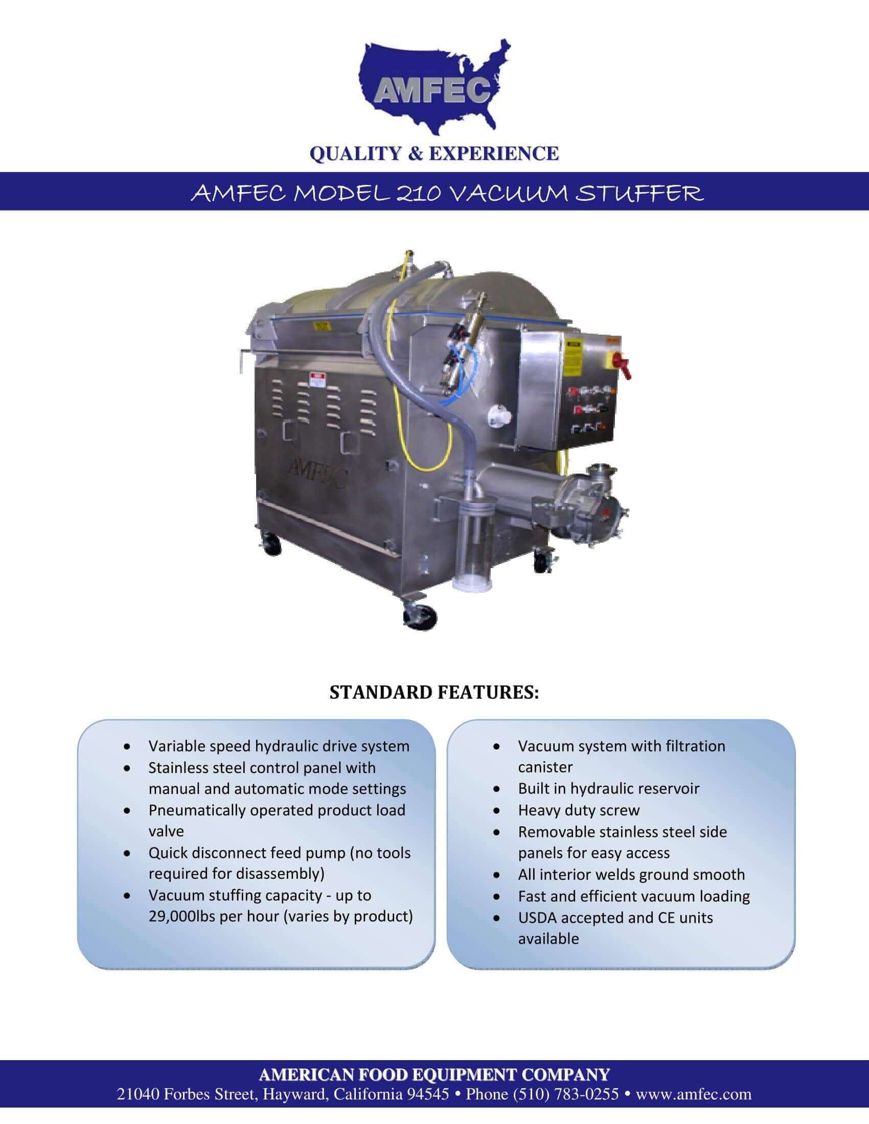 M&M Equipment Corp > Resources List > AMFEC 210 Vacuum Stuffer Brochure
