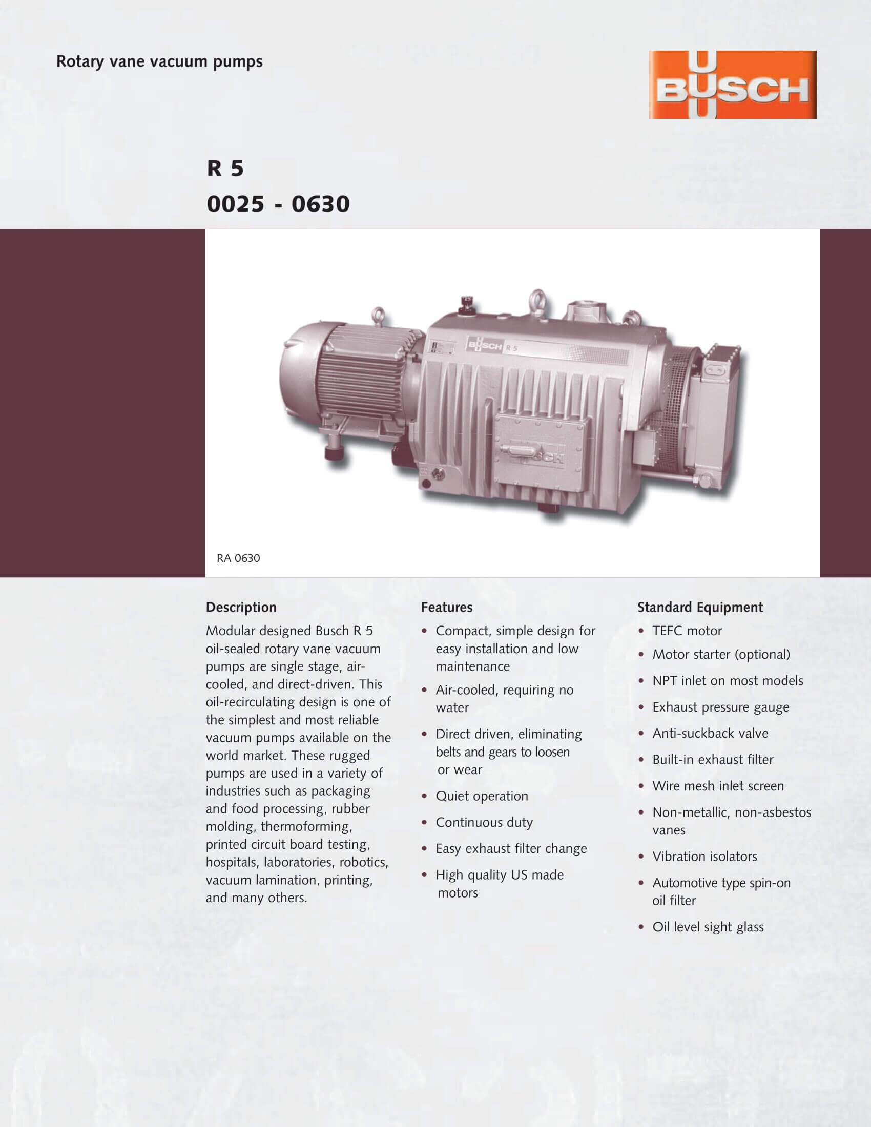 M&M Equipment Corp > Resources List > Busch R 5 0025 – 0630 Rotary Vane Vacuum Pumps Brochure