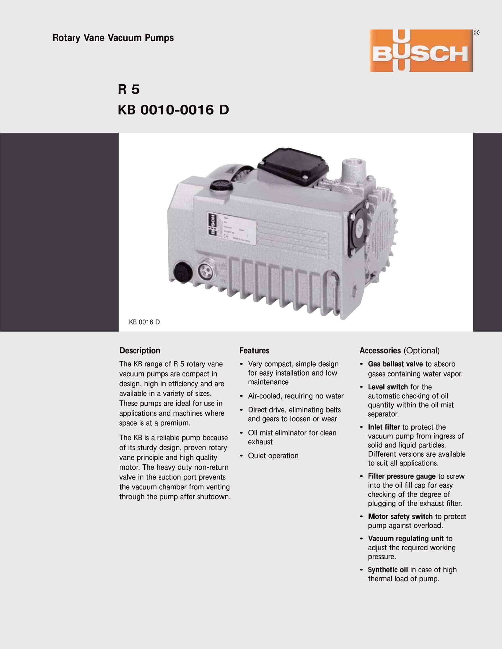 M&M Equipment Corp > Resources List > Busch R 5 KB 0010-0016 D Rotary Vane Vacuum Pumps Brochure
