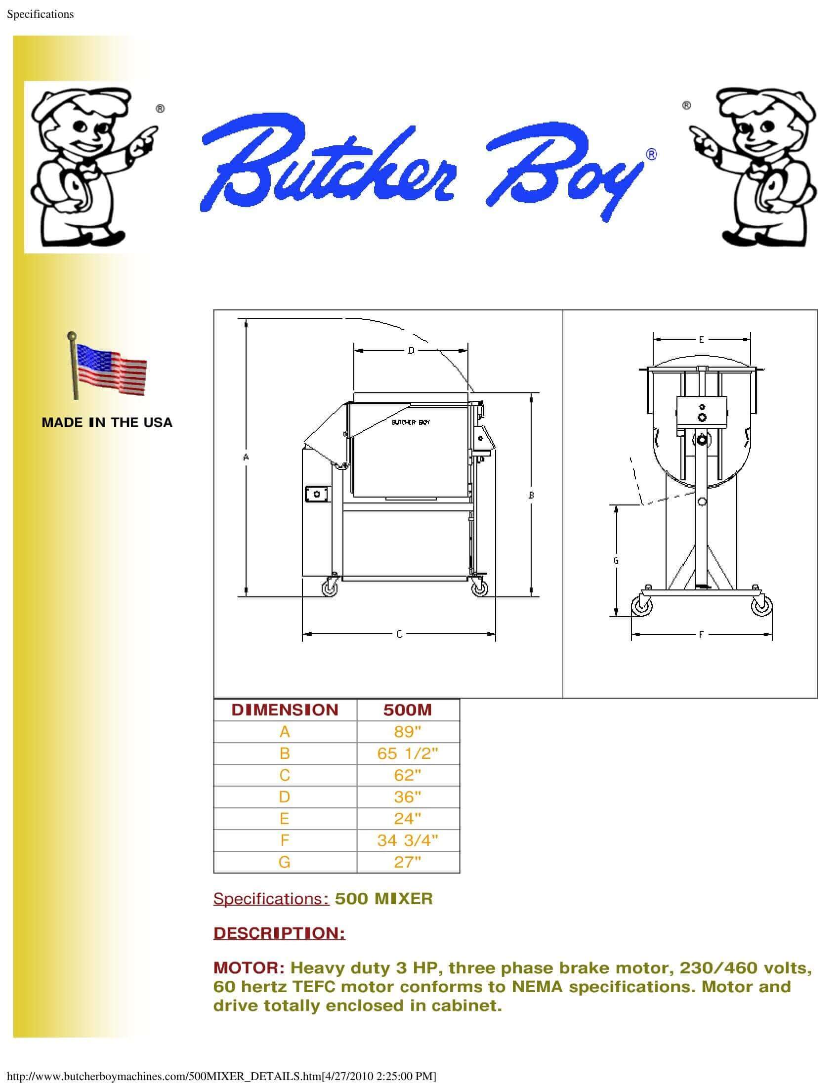 M&M Equipment Corp > Resources List > Butcher Boy 500 Mixer Brochure