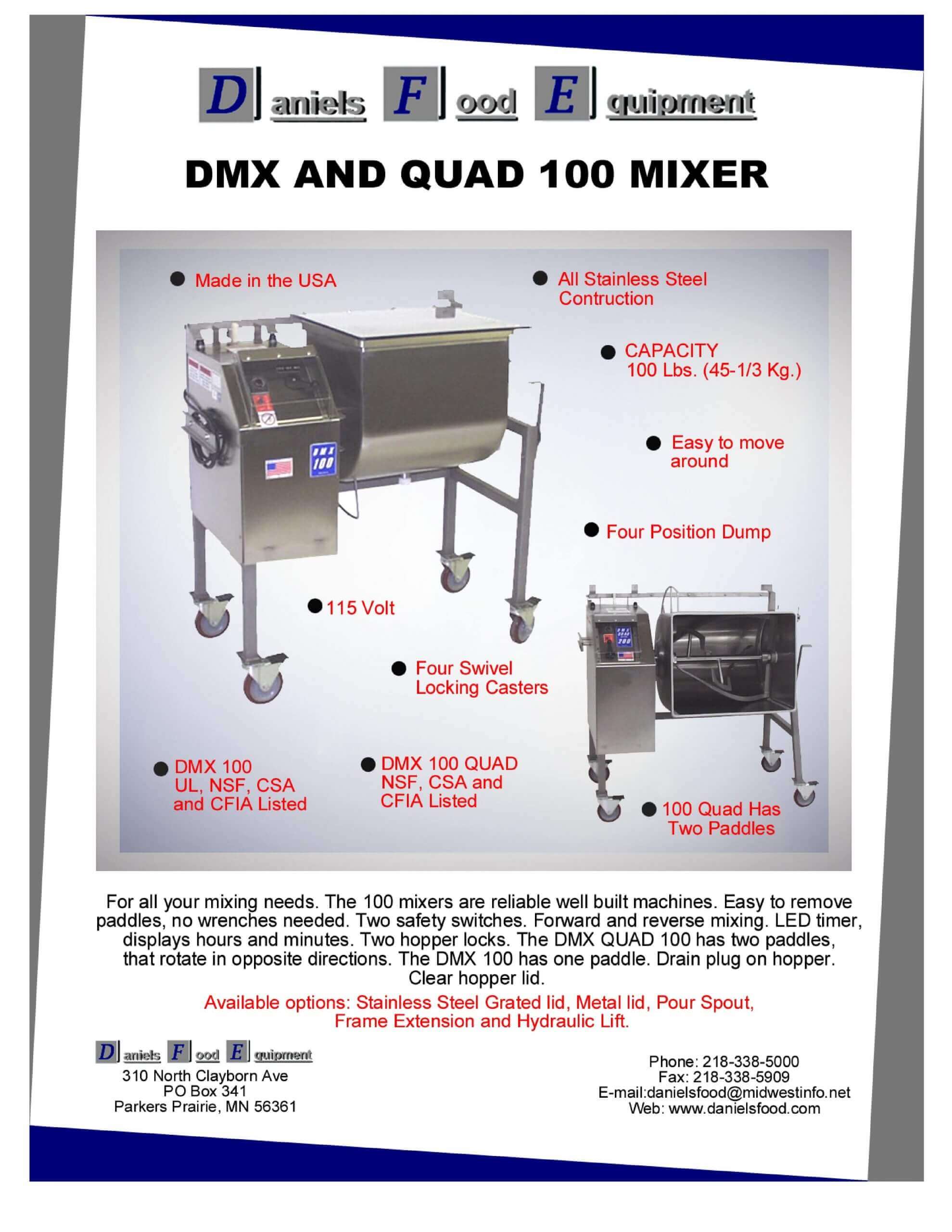 M&M Equipment Corp > Resources List > Daniels Food Equipment DMX And Quad 100 Mixer Brochure
