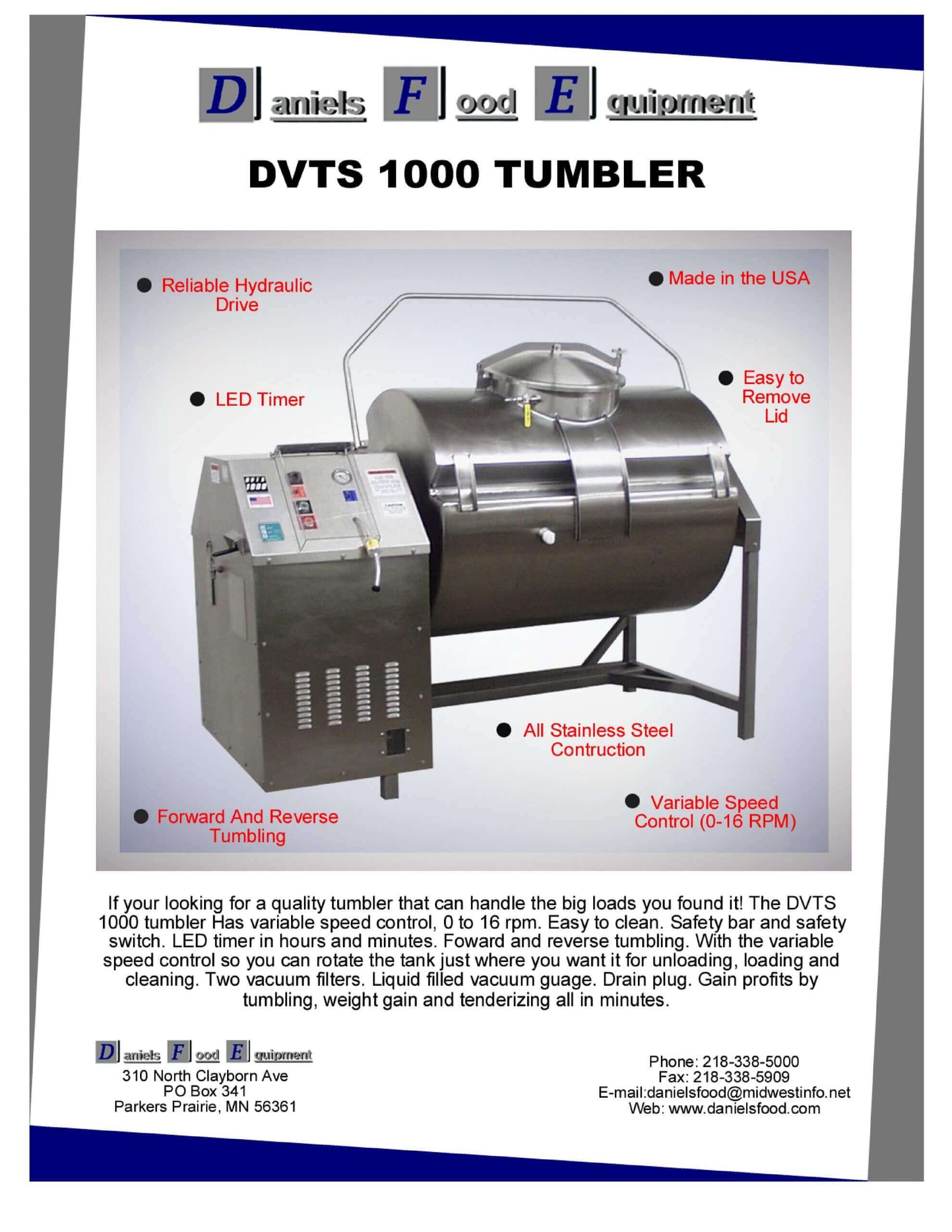 M&M Equipment Corp > Resources List > Daniels Food Equipment DVTS 1000 Tumbler Brochure