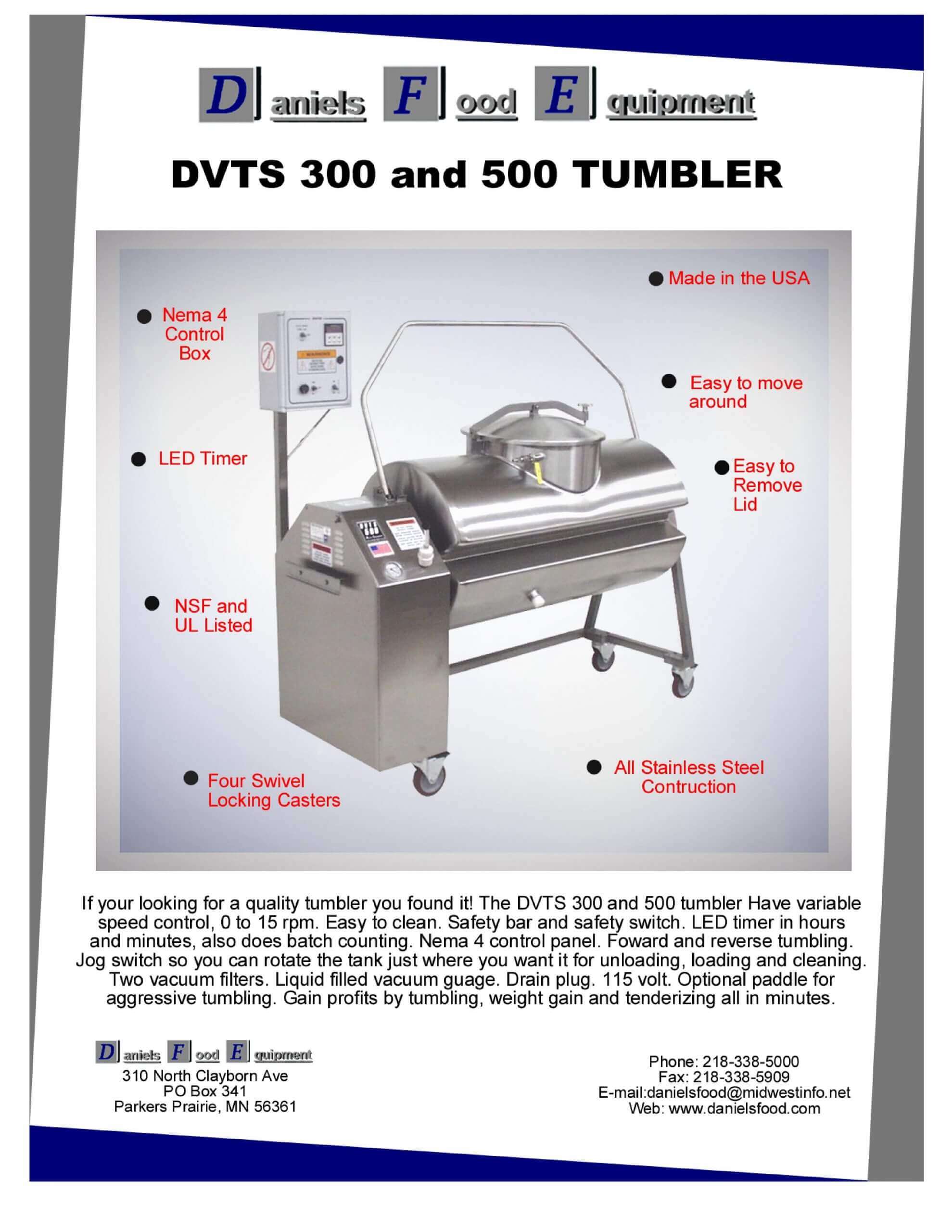 M&M Equipment Corp > Resources List > Daniels Food Equipment DVTS 300 And 500 Tumbler Brochure