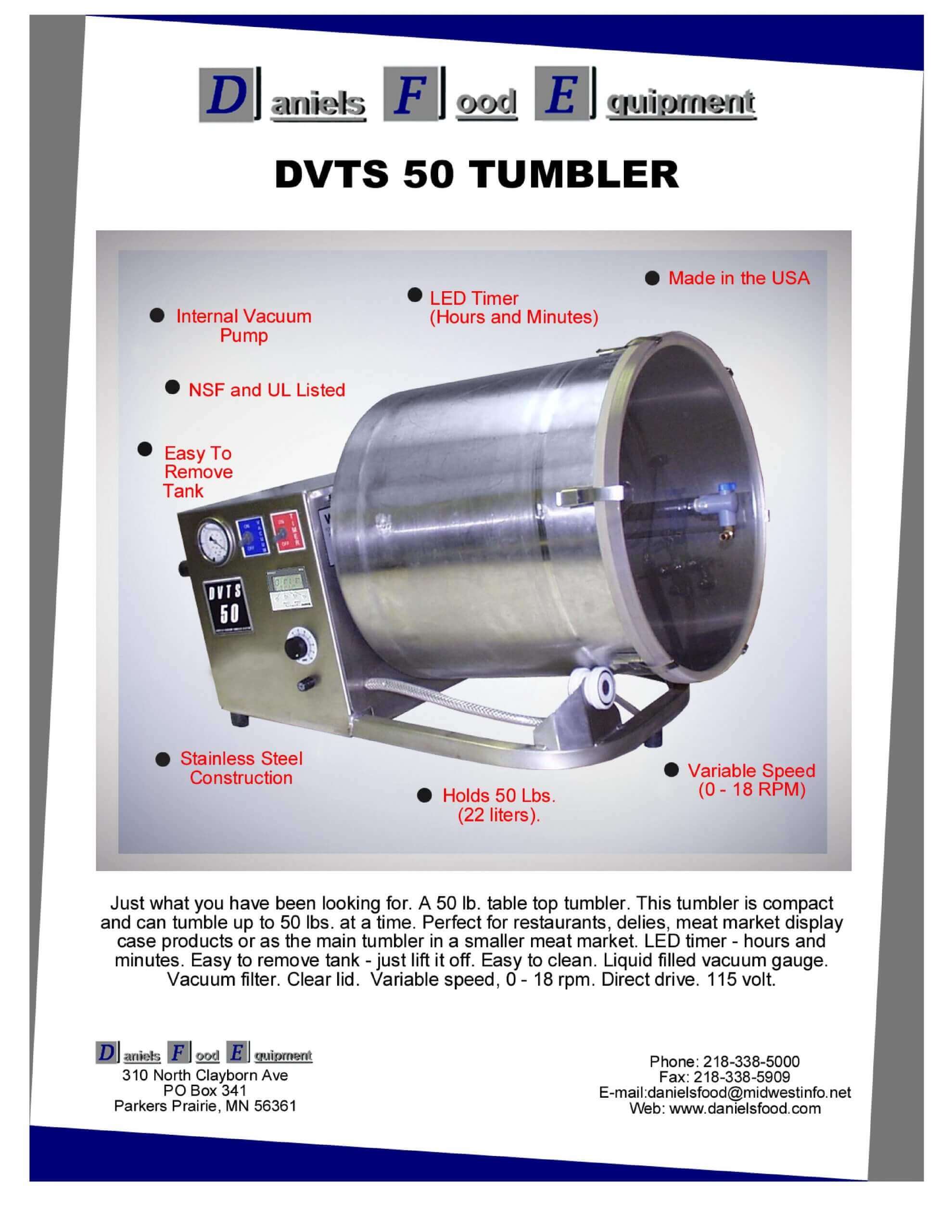 Daniels Food Equipment DVTS 50 Tumbler Brochure