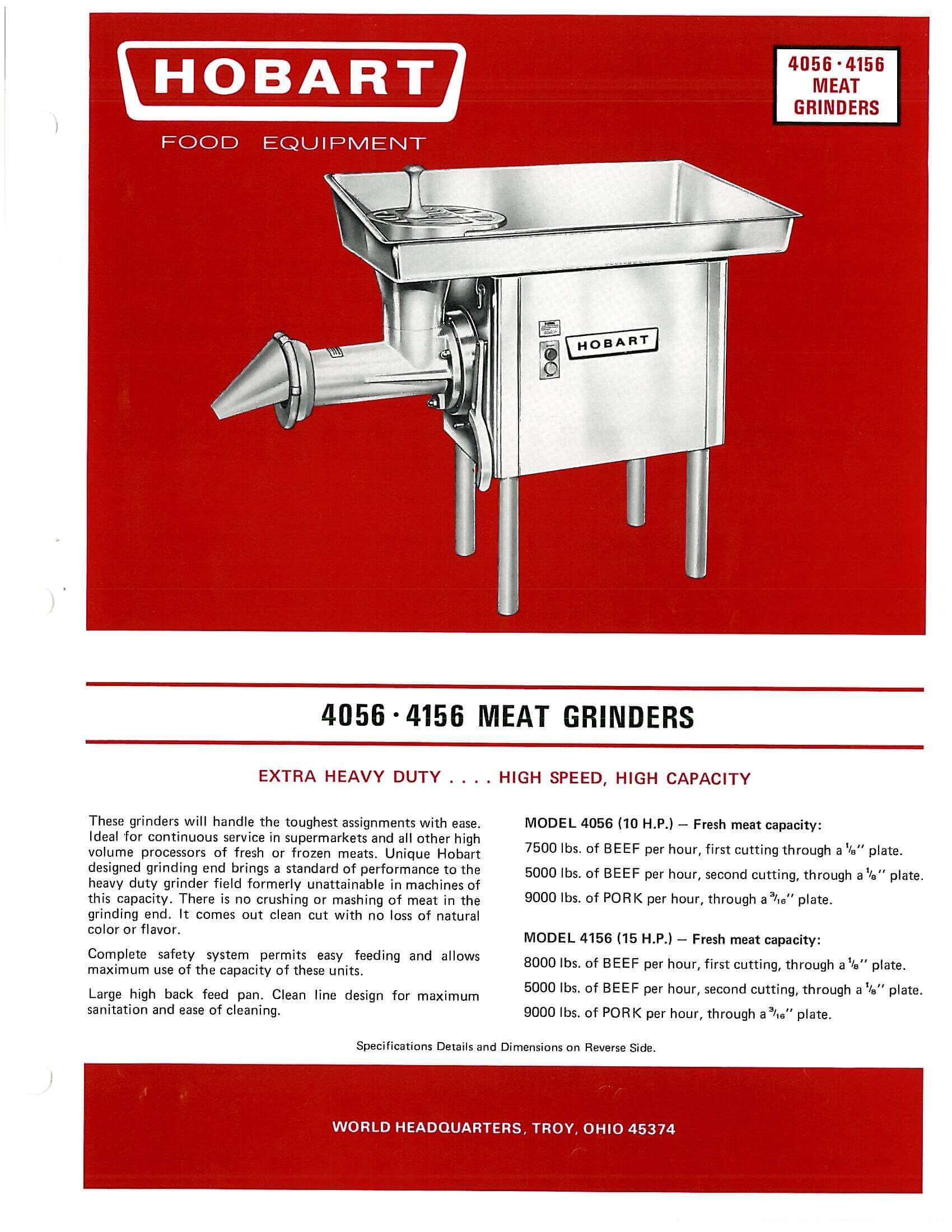 M&M Equipment Corp > Resources List > Hobart 4056-4156 Meat Grinders Brochure