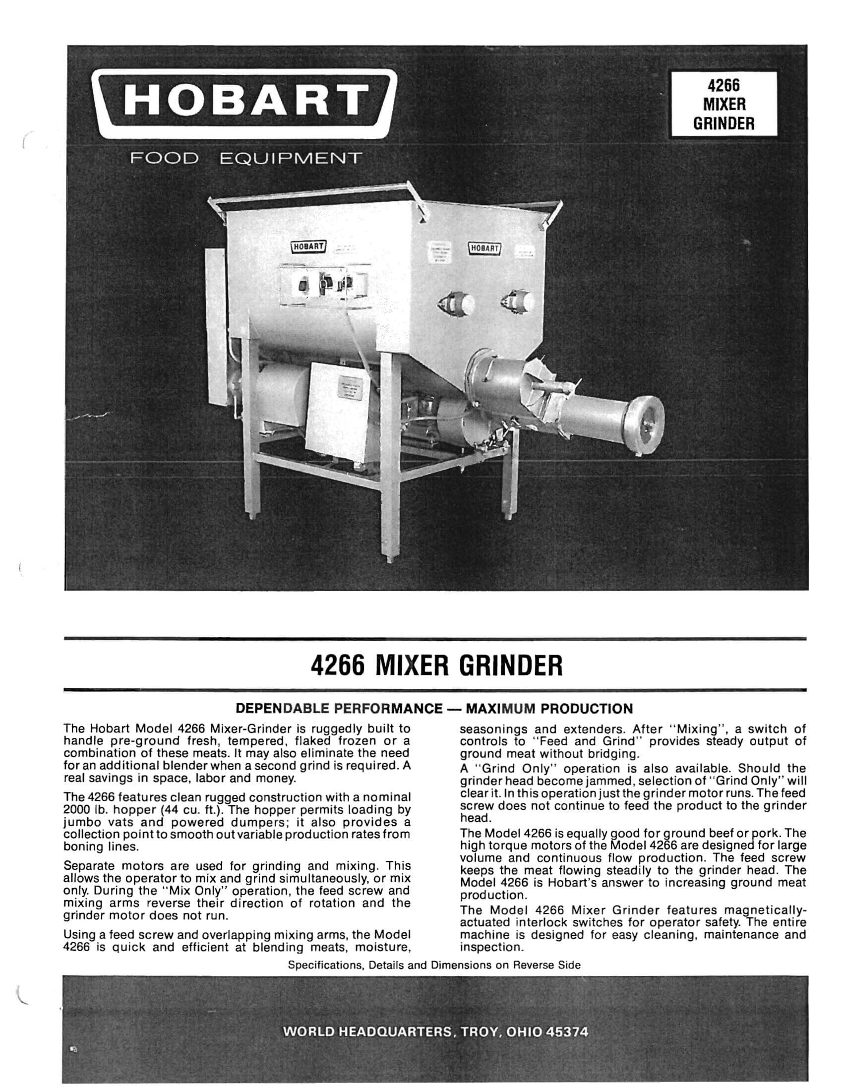 M&M Equipment Corp > Resources List > Hobart 4266 Mixer Grinder Brochure