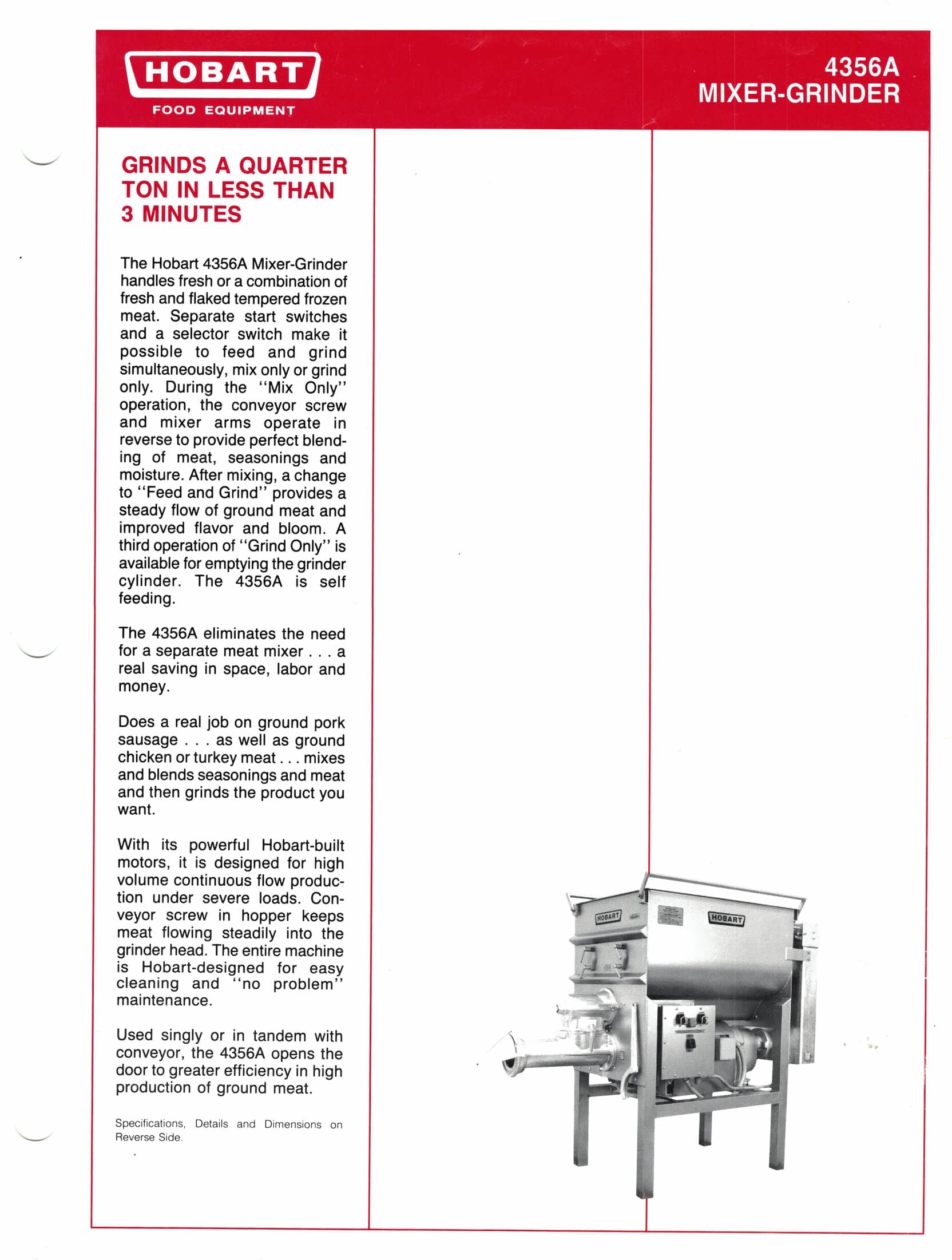 M&M Equipment Corp > Resources List > Hobart 4356A Mixer-Grinder Brochure