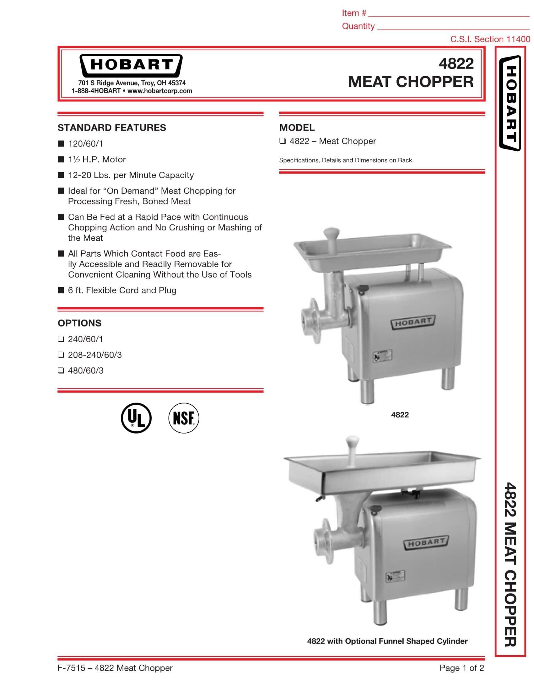 M&M Equipment Corp > Resources List > Hobart 4822 Meat Chopper Brochure