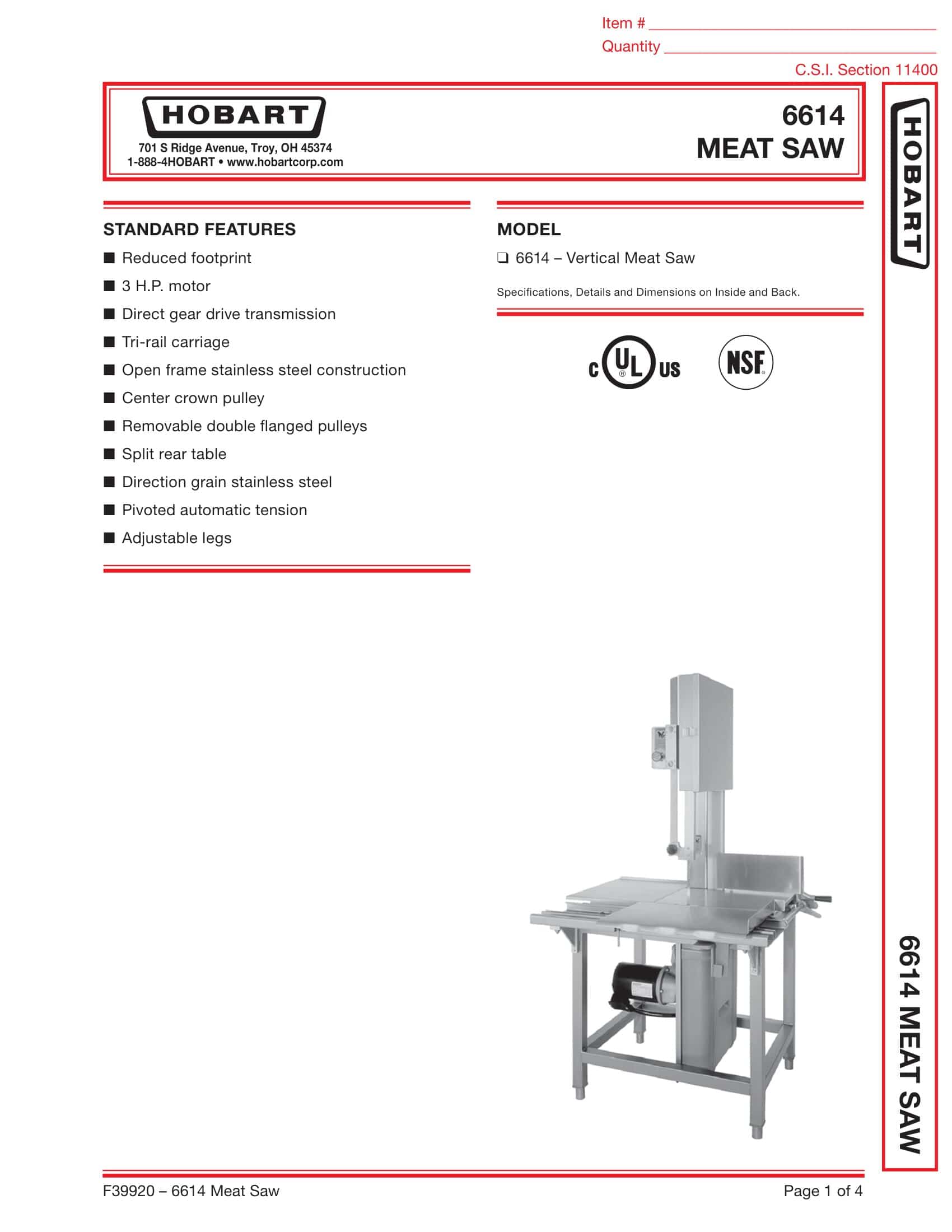M&M Equipment Corp > Resources List > Hobart 6614 Meat Saw Brochure