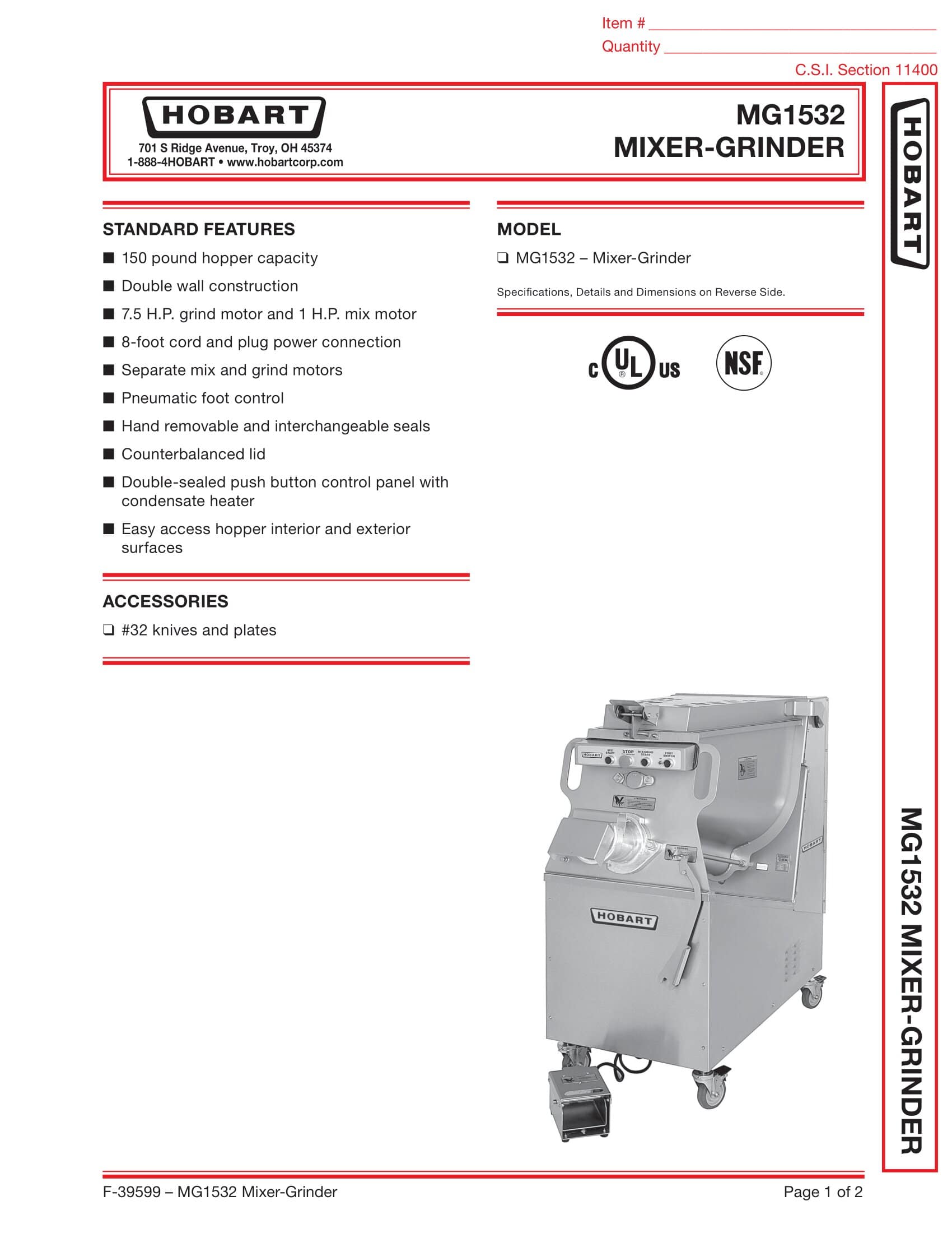 M&M Equipment Corp > Resources List > Hobart MG1532 Mixer-Grinder Brochure