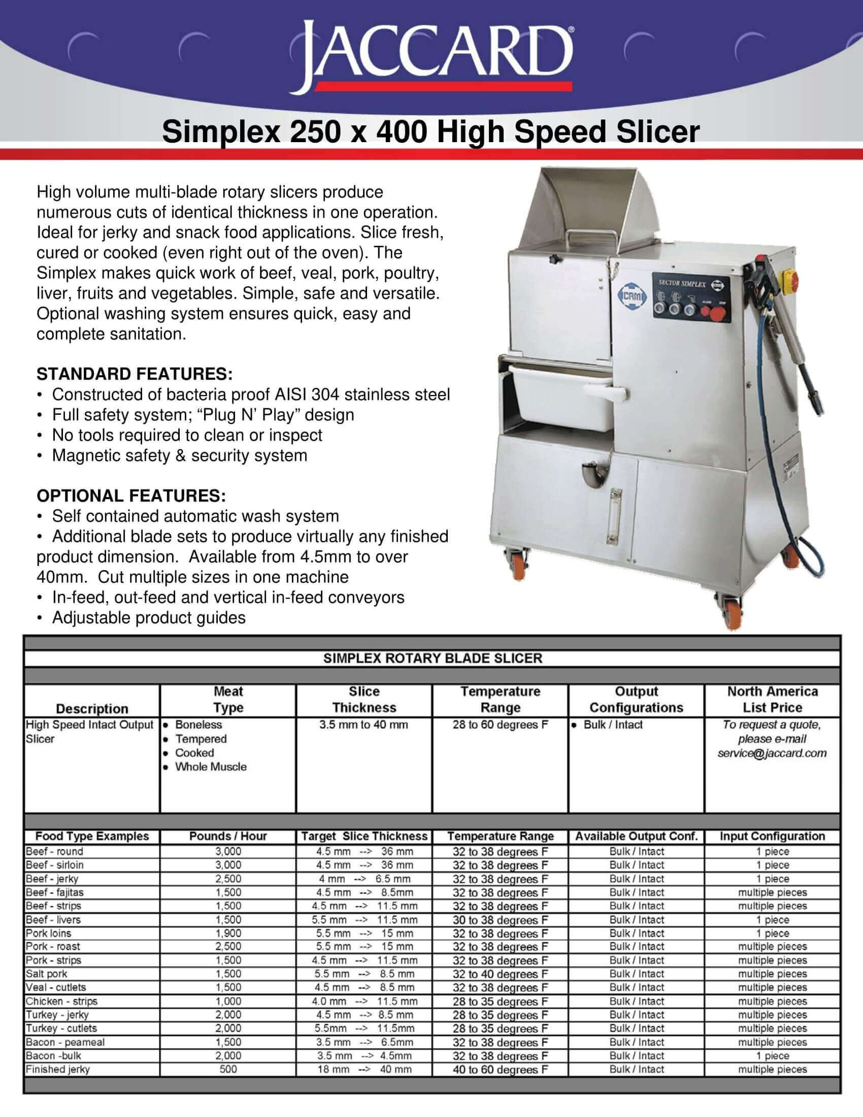 Jaccard Simplex 250×400 High Speed Slicer Brochure