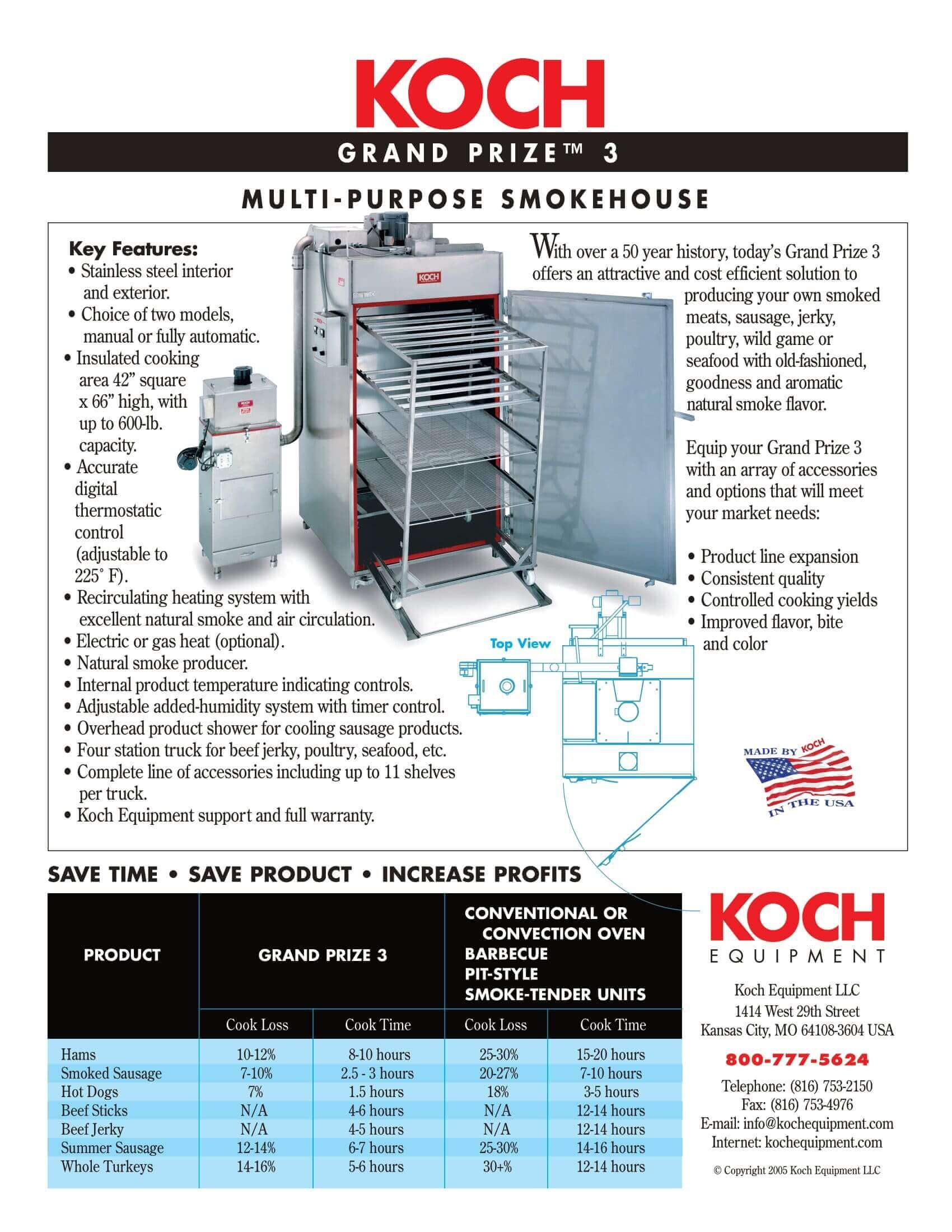 M&M Equipment Corp > Resources List > Koch Grand Prize 3 Multipurpose Smokehouse Brochure
