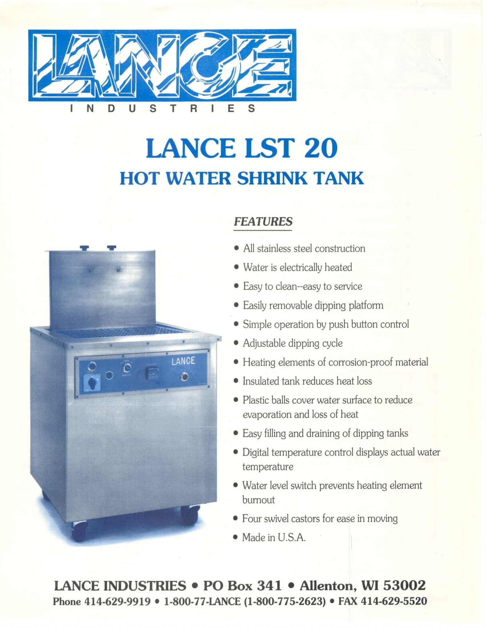 M&M Equipment Corp > Resources List > Lance LST 20 Hot Water Shrink Tank Brochure