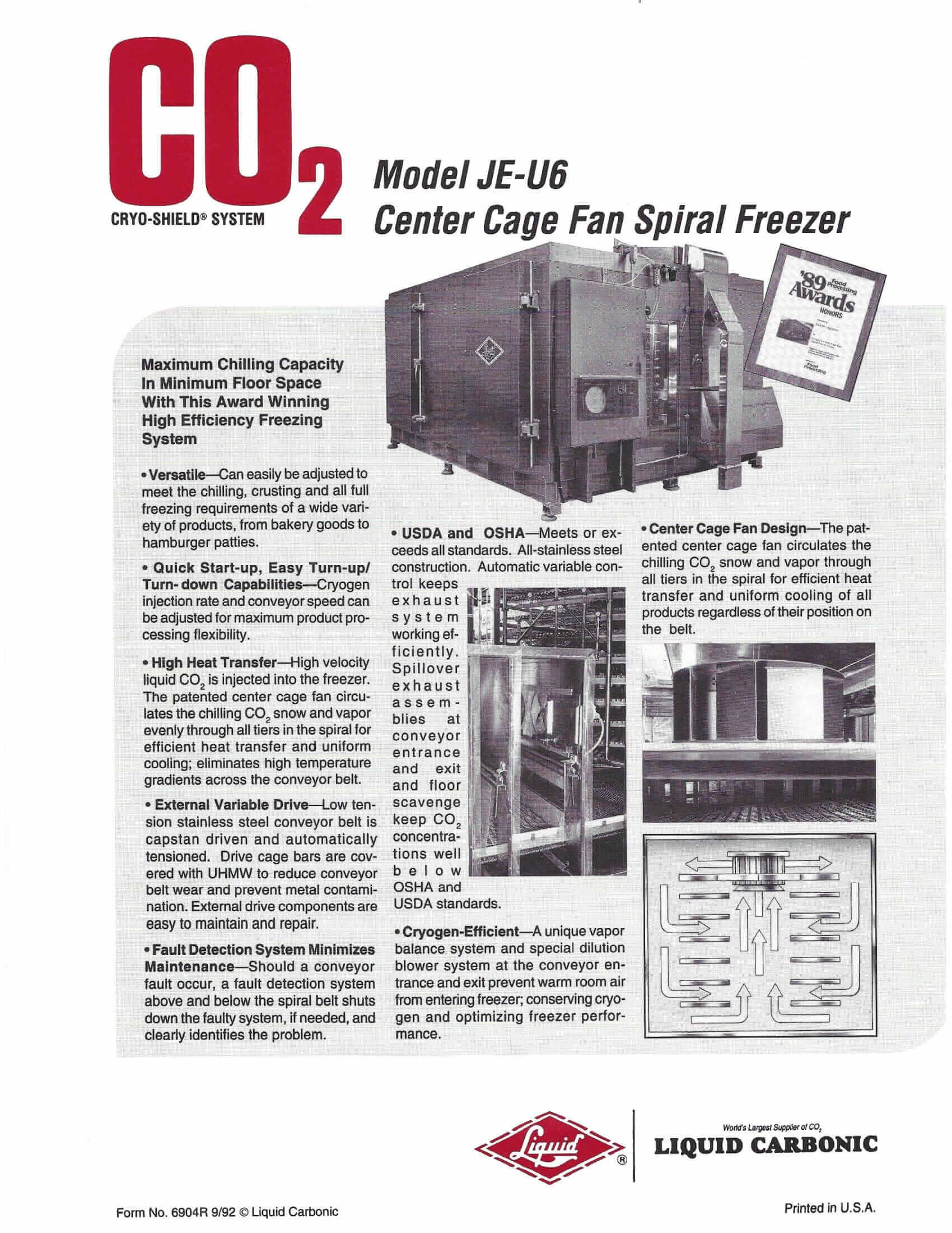 M&M Equipment Corp > Resources List > Liquid Carbonic CO2 JE-U6 Center Cage Fan Spiral Freezer Brochure
