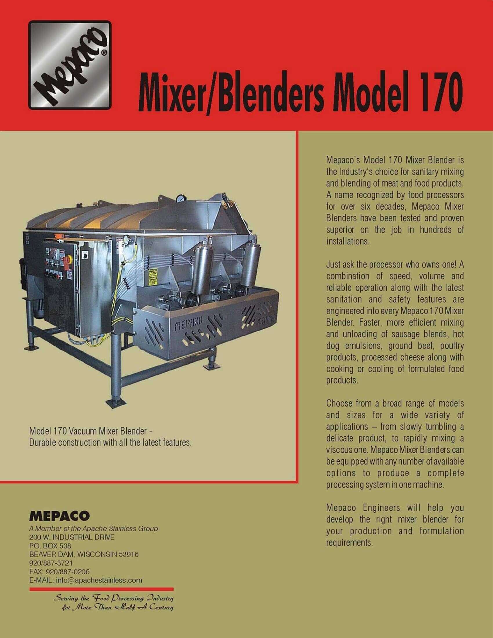 M&M Equipment Corp > Resources List > Mepaco 170 Mixer/Blenders Brochure
