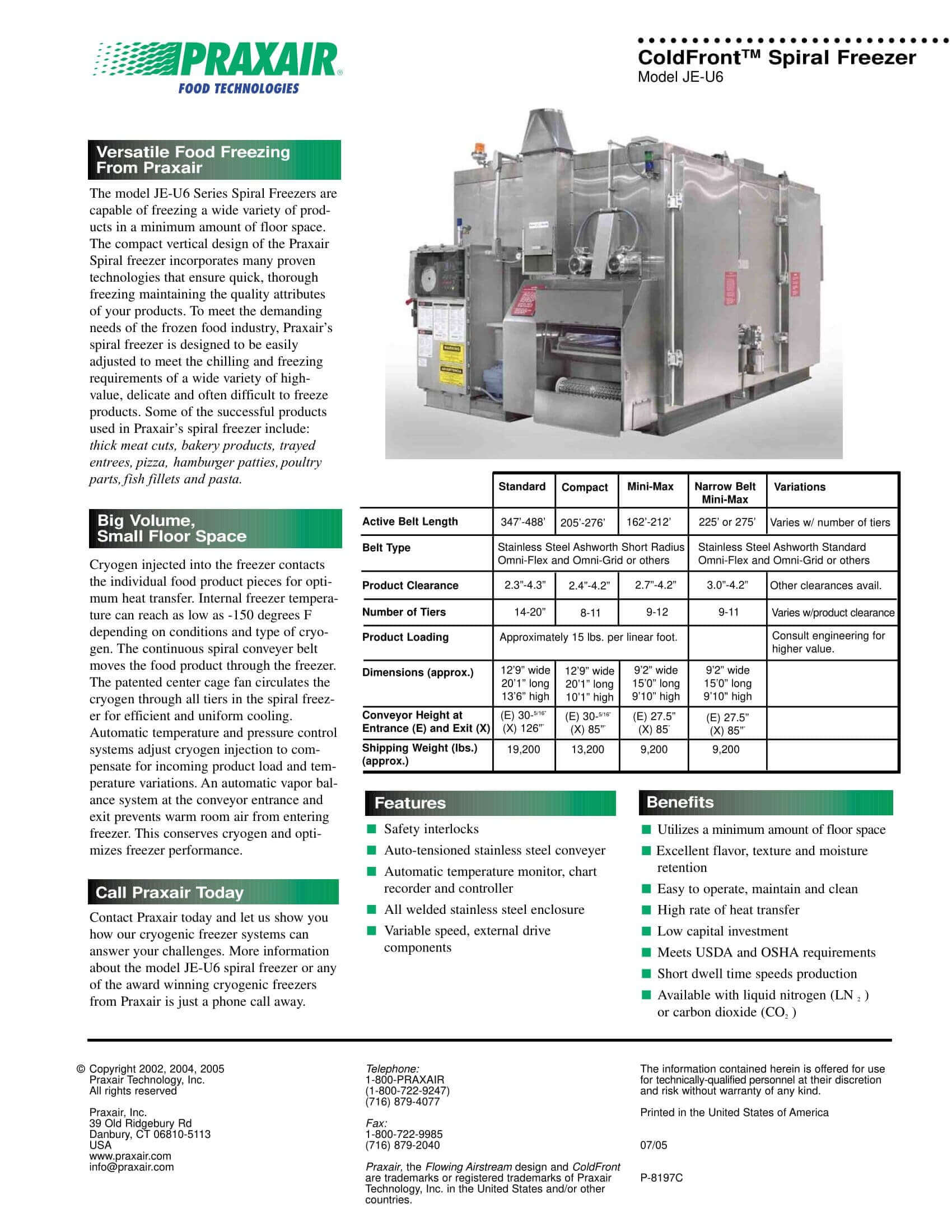 Praxair JE-U6 ColdFront Spiral Freezer Brochure