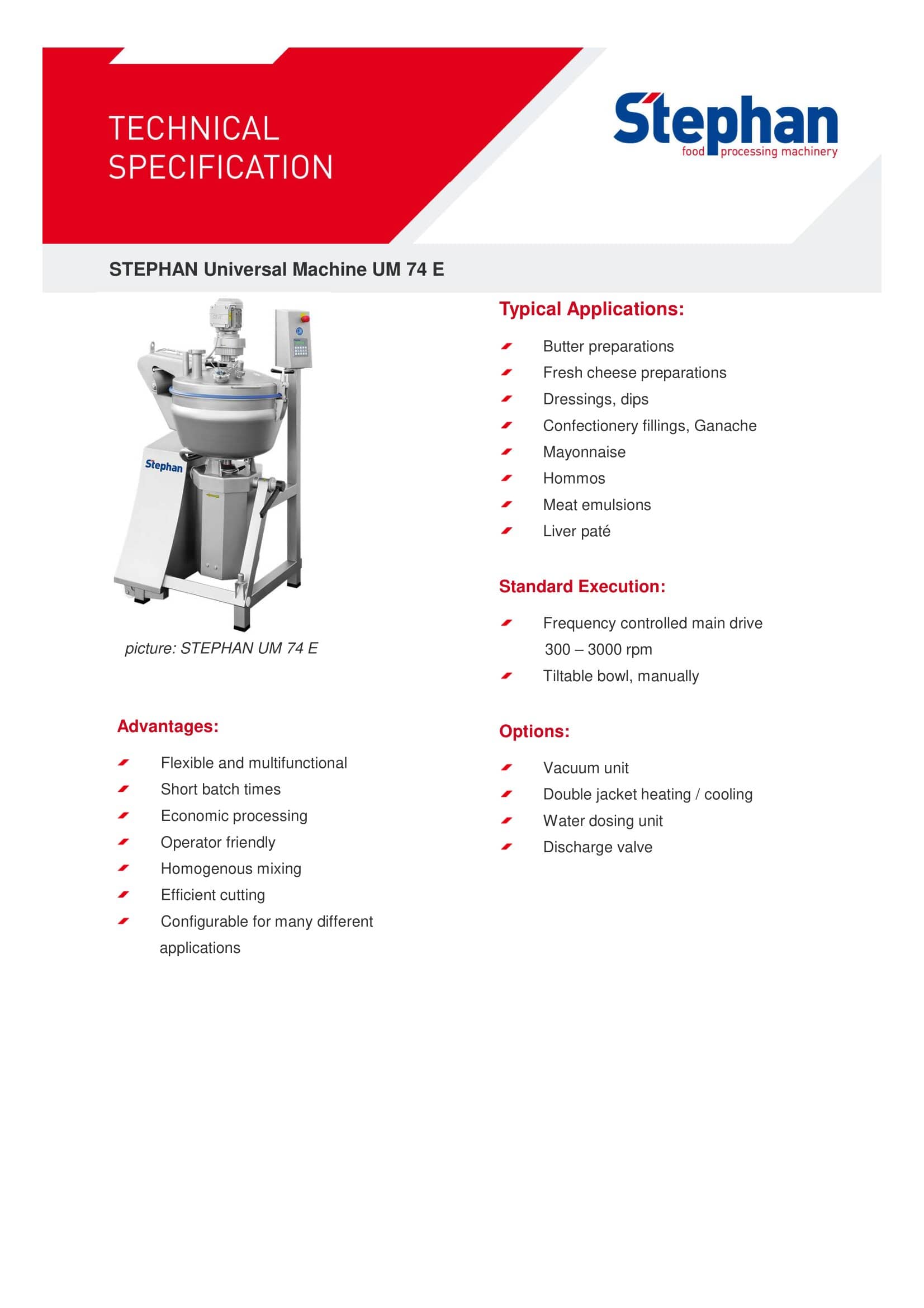 M&M Equipment Corp > Resources List > Stephan UM 74 E Food Processor Brochure