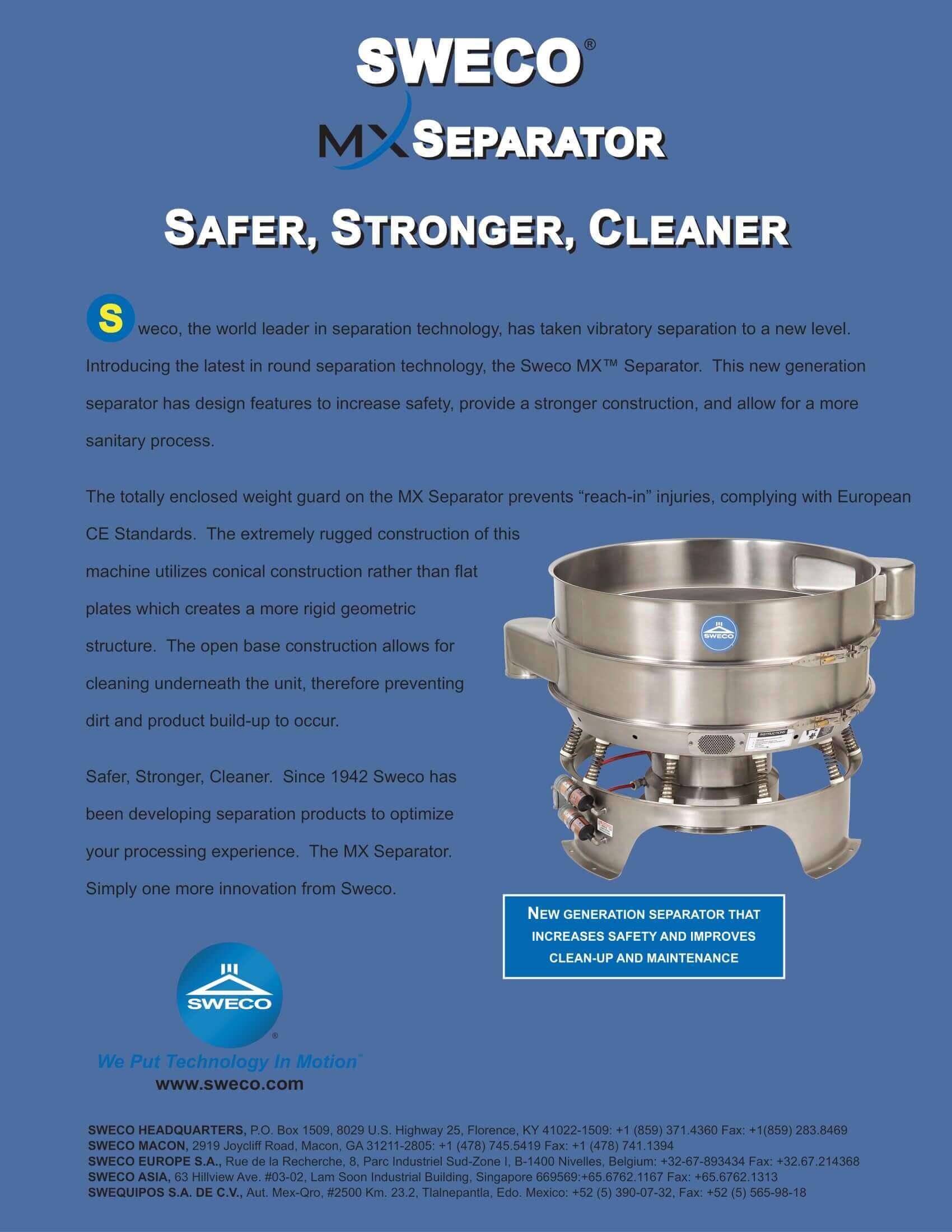 M&M Equipment Corp > Resources List > Sweco MX Separator Brochure