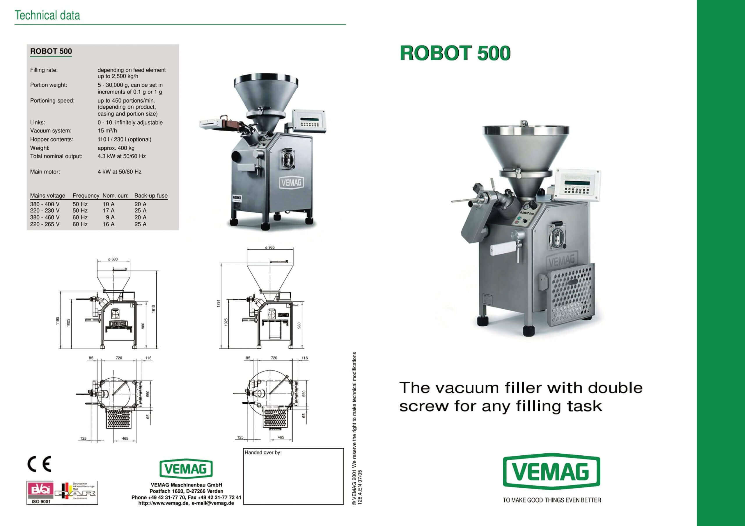 M&M Equipment Corp > Resources List > Vemag Robot 500 Vacuum Filler Brochure