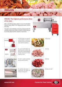 Treif Argon Dicer. The speed can be individually set by the operator (between 50 and 300 revolutions per minute) so that the cutting output can be precisely aligned with the respective requirements.