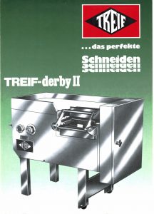 Treif Derby II Cutter Brochure. The derby II is a movable, horizontal placed semi-automatic universal cutter made in refined stainless steel. It cuts cubes, stripes and chips in an excellent cutting quality through the TREIF-cutting technique.