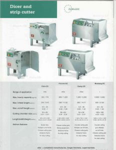 Treif Dicer And Strip Cutter Brochure. Grater disk, Multiple cut-of knife, Cheese cutting grid, Distance frame for strip cutting. Cheese cutting grid, Slicing equipment, Distance frame for strip cutting.
