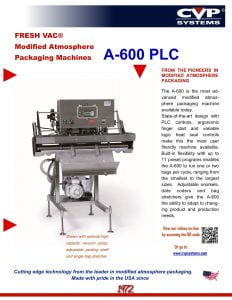 CVP Systems A-600 PLC Fresh Vac. A wide range of motion allows the machine to operate vertically or horizontally. It can run one or two packages per cycle. Imprinting date coders require no tools to adjust.