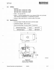 Cryovac ST101 Shrink Tunnel. Steam - 1" IPS line supplying 40 lbs. max pressure (25 lbs. min.) at tunnel inlet; 250,000 to 400,000 BTU/hr depending on the product.