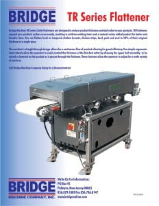 Bridge TR Series Flattener. TR Flatteners expand your products surface area evenly, resulting in uniform cooking times and a natural-value added product for batter and breader lines. You can flatten fresh or tempered chicken breasts, chicken strips, beef, pork and veal to 50% of their original thickness in a single pass.