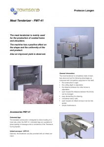 Townsend PMT-41 Meat Tenderizer. The meat tenderizer is mainly used for the production of cooked hams and shoulders. The machine has a positive effect on the shape and the uniformity of the end product.