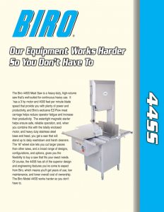 Biro HHP Meat Grinders. The Biro HHP (Heavy Horse Power) Meat Grinders are a series of manual feed grinders with a range of bowl sizes and motor sizes that can be tailored to meet your grinding needs. With bowl sizes of 48, 52, or 56 and motor sizes of 5, 7.5, 10, or 15 hp (4, 5.5, 7.5, or 11 kW), we can provide a grinder that is just right for your operation.