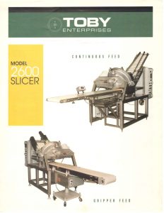 Toby 2600 Slicer. Consecutive Product Loading for continuous high-speed slicing. Stepper Feed System for accurate, consistent slice thickness. Product Holding Orifice reduces end loss increases yield.