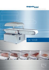 Supervac GK 501B Vacuum Packaging Machine. The conveyorized stainless steel vacuum packaging machine with increased output from only one operator. For meat, fish, cheese and all other food and non-food products.