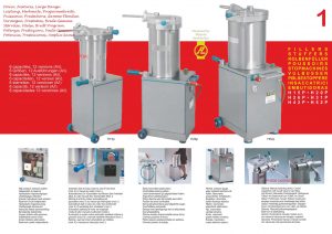 Talsa Fillers/Stuffers Series. High pressure suitable for dense and cold mixtures. Speed control knob situated near the operator for precise adjustment. Comfortable knee lever operation allows the user to keep hands free.