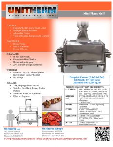 Unitherm Mini Flame Grill. Flame grill, Bar-mark, roast, color. Multiple ribbon burners. Adjustable flame. Time & relative temperature control. Venturi gas/air control system.