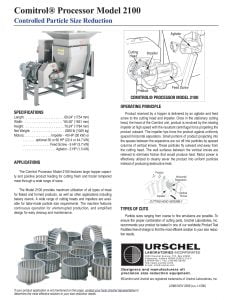 Urschel 2100 Comitrol Processor. The Comitrol Processor Model 2100 features large hopper capacity and positive product feeding for cutting fresh and frozen tempered meat through a wide range of sizes.