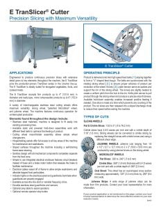 Urschel E TranSlicer Cutter. Engineered to produce continuous precision slices with extensive detail given to key elements throughout the machine, the E TranSlicer joins the production-proven TranSlicer series in the Urschel line-up.