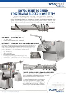 Scansteel MG Series Grinders. The scansteel foodtech MG 400 is an incredibly strong and reliable grinder for frozen blocks of meat raw material of any type as well as for certain bone-in products.