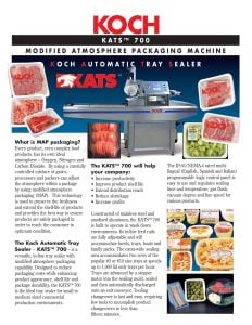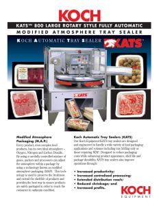 Koch Kats 800 Atmosphere Tray Sealer. Our Koch Equipment KATS tray sealers are designed and engineered to handle a wide variety of food packaging applications and volumes including tray lidding only or those requiring MAP.