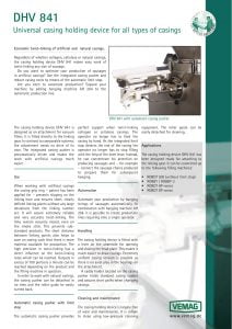 Vemag DHV 841 Casing Holding Device. The casing holding device DHV 841 is designed as an attachment for vacuum fillers. It is fitted directly to the linking gear. In contrast to comparable systems, the attachment needs no drive of its own.