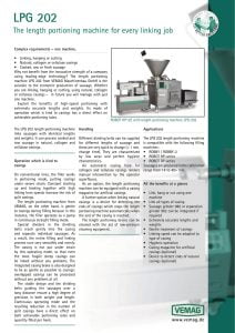 Vemag LPG 202 Length Portioning. The LPG 202 length portioning machine links sausages with identical lengths and weights. It can process cooked and raw sausage in natural, collagen and cellulose casings.