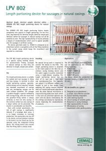 Vemag LPV 802 Length Portioning Device. The LPV 802 length portioning device is a special casing holding device for automatically linking sausages in natural casings so that they are identical in length, weight and caliber.