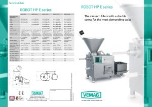 Vemag Robot HP E Series Vacuum Filler. Consistent quality for your products. High torque across the entire speed range. Very quiet running. Graphical control optimizes user guidance. Easily accessible for all maintenance tasks.