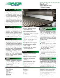 Praxair ColdFront Ultra Performance Flighted Freezer. All drive components located outside product zone. easily handled vertical doors. Vapor balance system to efficiently utilize cryogen.
