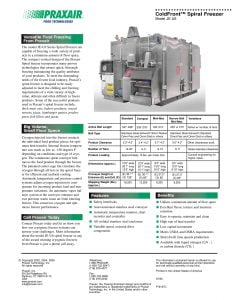 Praxair JE-U6 ColdFront Spiral Freezer. The model JE-U6 Series Spiral Freezers are capable of freezing a wide variety of products in a minimum amount of floor space.