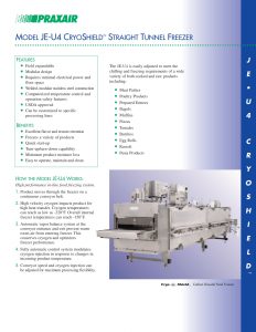 Praxair JE-U4 CryoShield Straight Tunnel Freezer. Requires minimal electrical power and floor space. Welded, modular stainless steel construction. Computerized temperature control and operation safety features.