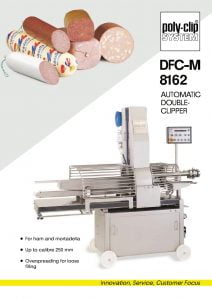 Poly-Clip DFC-M 8162 Automatic Double-Clipper. The DFC-M 8162 is a special machine for ham products and mortadella sausage. Both fibrous and artificial casings can be processed.