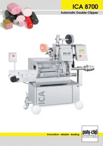 Poly-Clip ICA 8700 Automatic Double-Clipper. Short clip cycles for high-level output. Electrically driven and controlled by servo converter. Patented iris separator ensures short, symmetrical sausage ends.