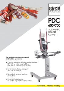 Poly-Clip PDC 600/700 Automatic Double-Clipper. The PDC 600 and PDC 700 automatic double clippers are suitable for all sizes of operations – for small or large production runs. They close any plastic, fibrous, collagen, or natural casing in diameter up to 80 mm (PDC 600) or up to 115 mm (PDC 700).