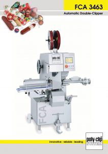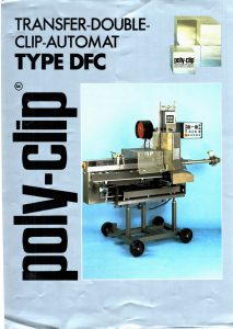 Poly-Clip Double-Clip-Automat (Fill-Clip). The prooven "fill-clip"-principle is used with the double fill-clip automat type DFC for large diameter sausages. While using a swing-out stuffing horn, the pre-shirred casing can be easily supplied.
